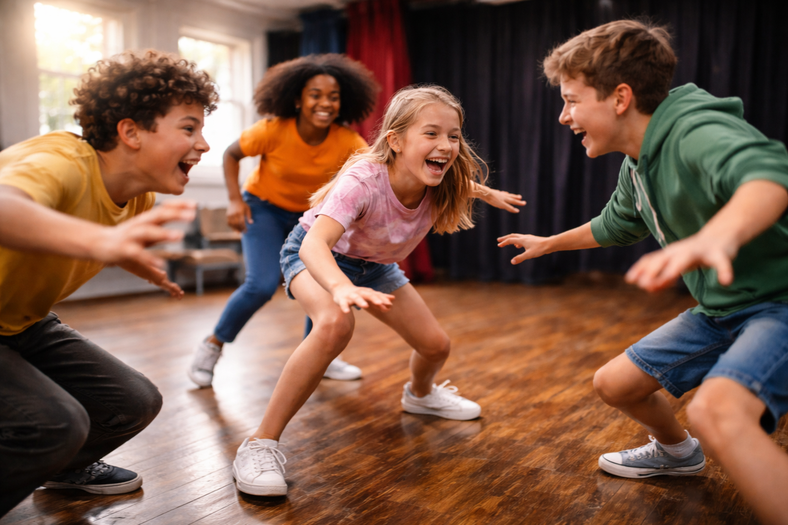 A través de juegos teatrales, improvisación y movimiento, los participantes desarrollan confianza, creatividad y trabajo en grupo en un entorno cuidado.