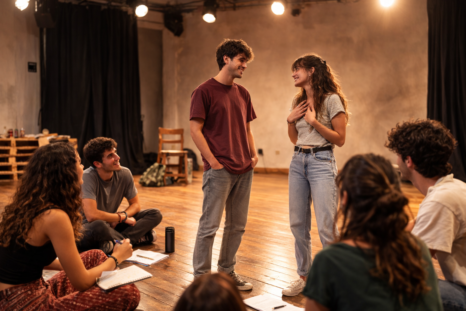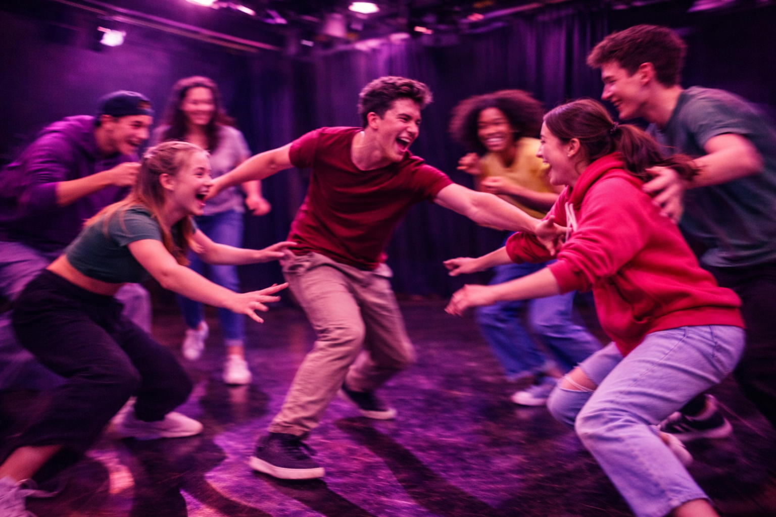 Improvisación, juego físico y trabajo creativo para entrenar la actuación, desbloquear el cuerpo y experimentar la escena desde la libertad y el presente.